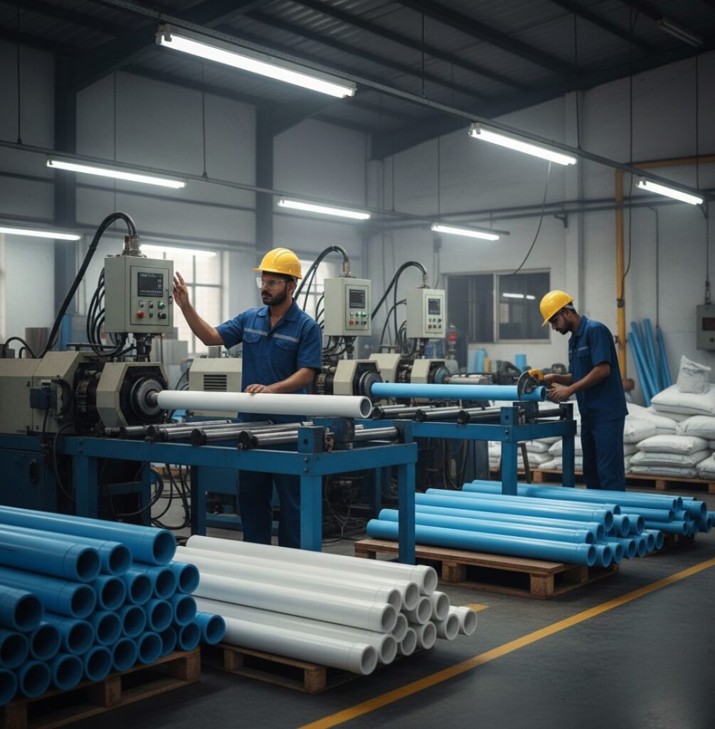 Our manufacturing unit features modern but practical machinery designed for precise PVC pipe production. Each pipe is made using quality raw materials and monitored processes to ensure: